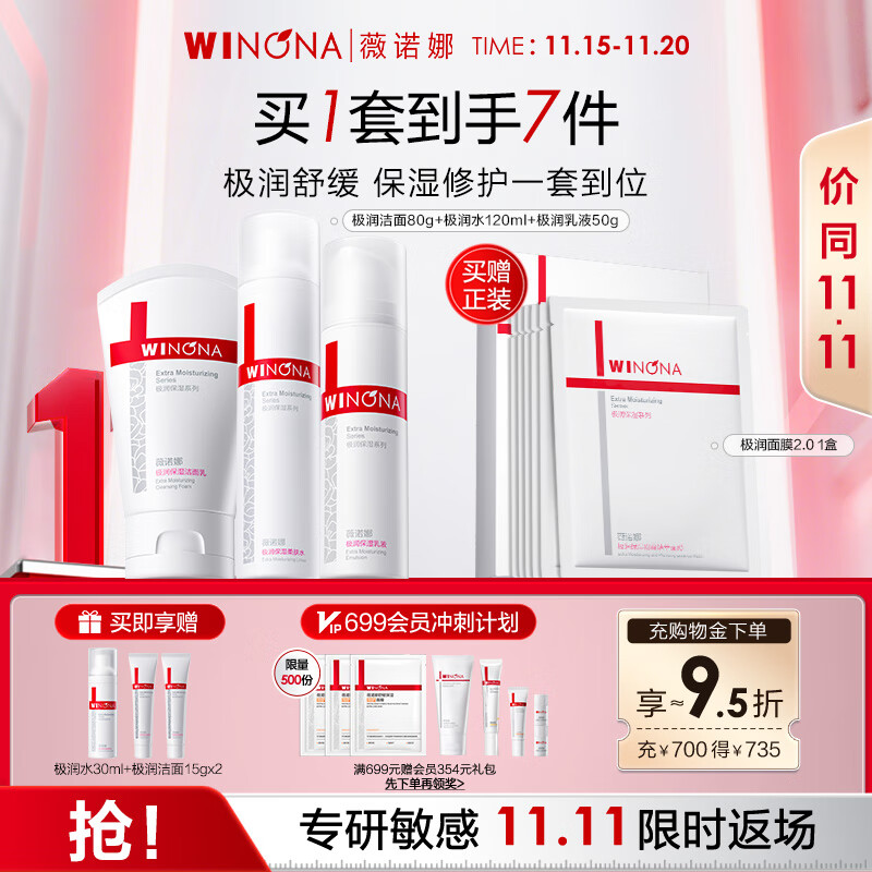 薇诺娜极润洁水乳3件套洗面奶爽肤水乳液护肤品套装
