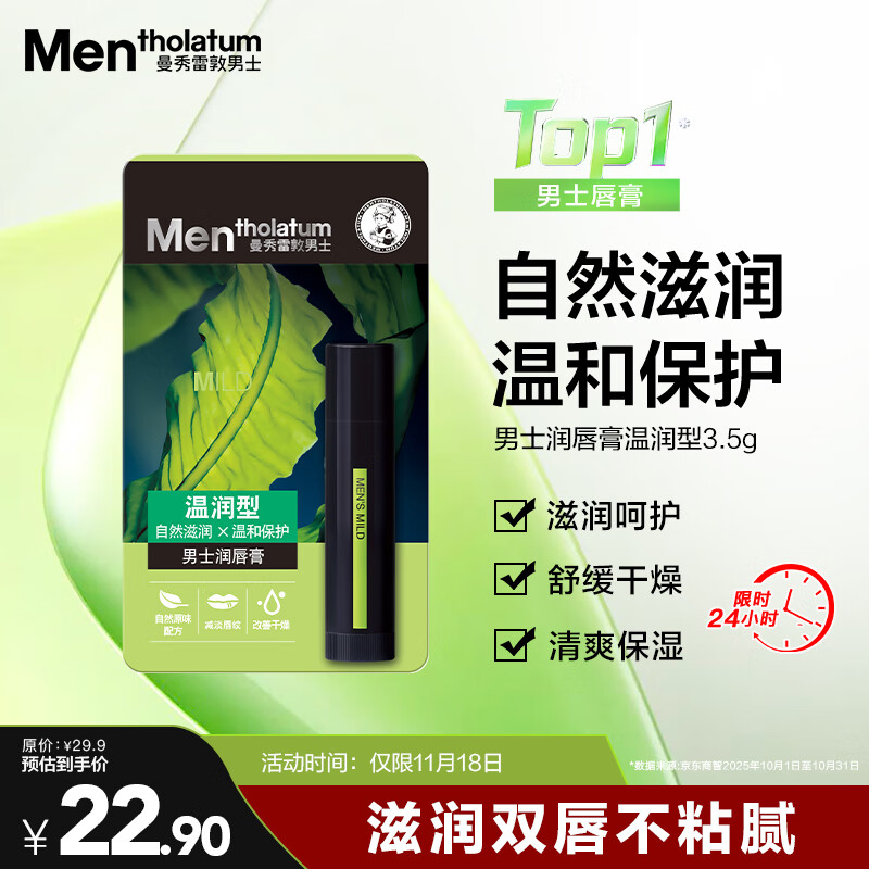 曼秀雷敦男士润唇膏3.5g 滋润保湿补水防干裂脱皮唇油送礼物男