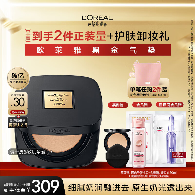 欧莱雅黑金气垫W20自然健康持妆遮瑕奶油滋润防晒BB霜生日礼物粉底液