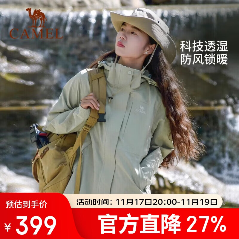 骆驼(CAMEL)冲锋衣男女外套三合一可拆卸两件套户外暴雨级防水防风登山服