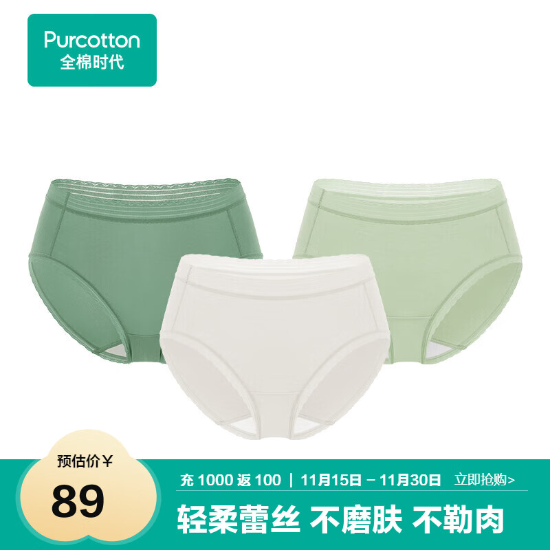 全棉时代女士内裤纯棉性感内裤女蕾丝三角裤 春藤绿+迷雾绿+奶白 165