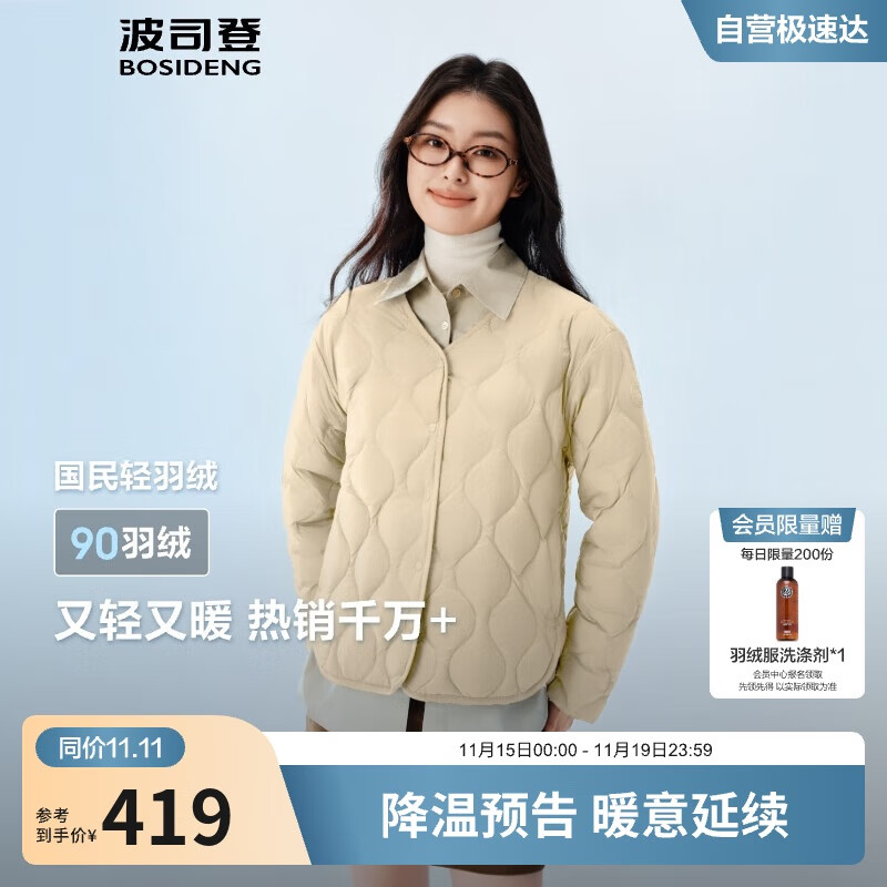 波司登25年羽绒服女士秋冬90绒轻薄V领修身短款休闲送礼物外套