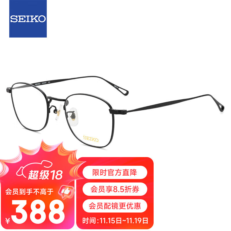 精工(SEIKO)眼镜框男女款超轻商务休闲钛材全框远近视眼镜架H03097 193 49mm