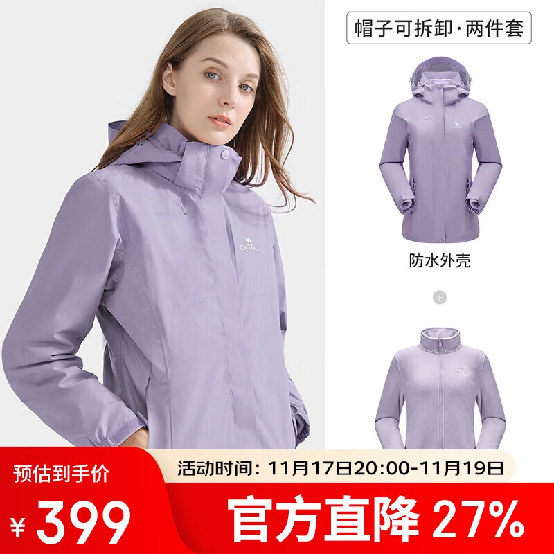 骆驼(CAMEL)[王者凯甲]户外三合一冲锋衣男女防风外套新款登山服