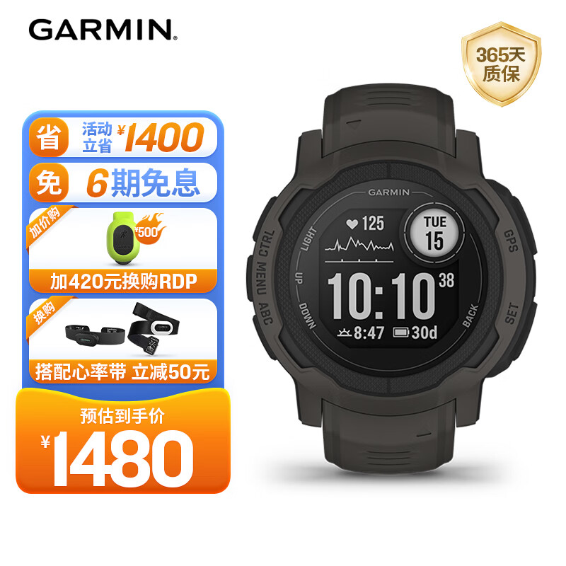 佳明(GARMIN)Instinct2本能GPS北斗多星定位户外运动智能手表运动石墨灰