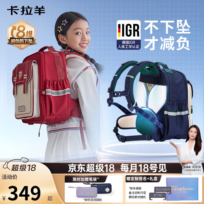 卡拉羊【云朵书包ProMax】小学生1-3-6年级8维减负防下坠男女儿童背包