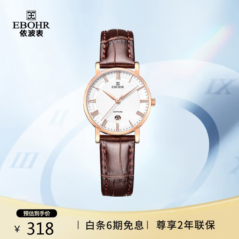 依波(EBOHR)手表女 大师系列简约皮带520情人节礼物石英表36000241送女生