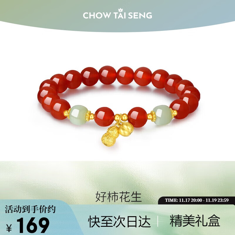 周大生花生吊坠红玛瑙银手串手链高级国风设计感生日礼物送女友