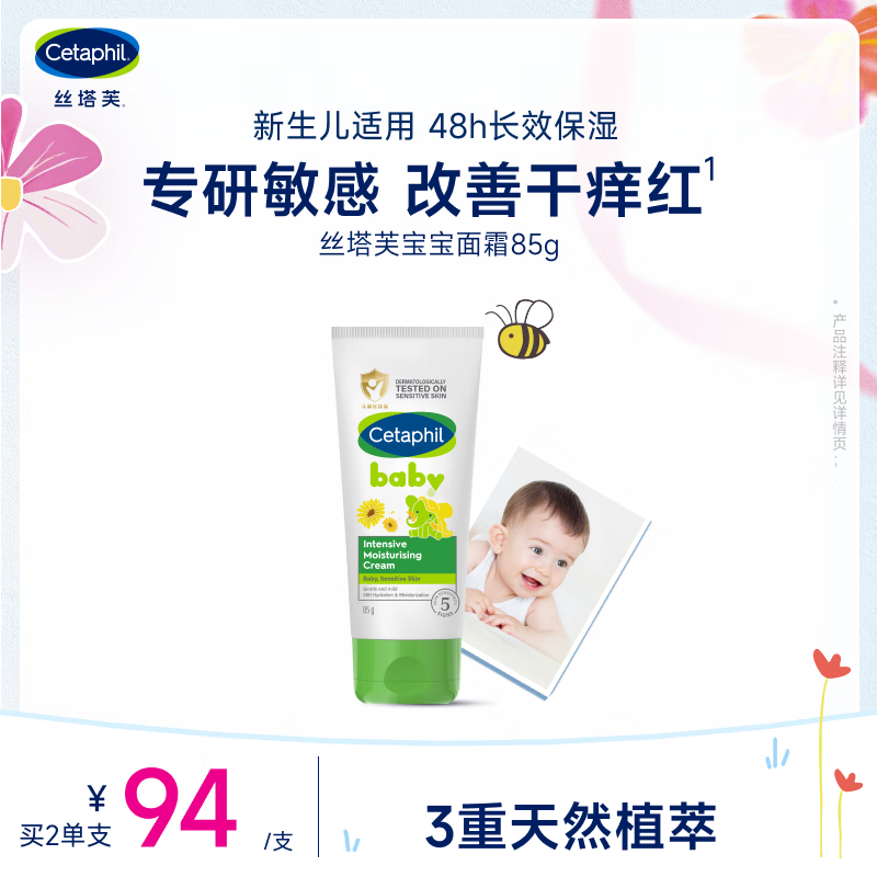 丝塔芙(Cetaphil)温和特护保湿霜85g宝宝面霜婴幼儿面霜儿童面霜润肤乳液滋润补水