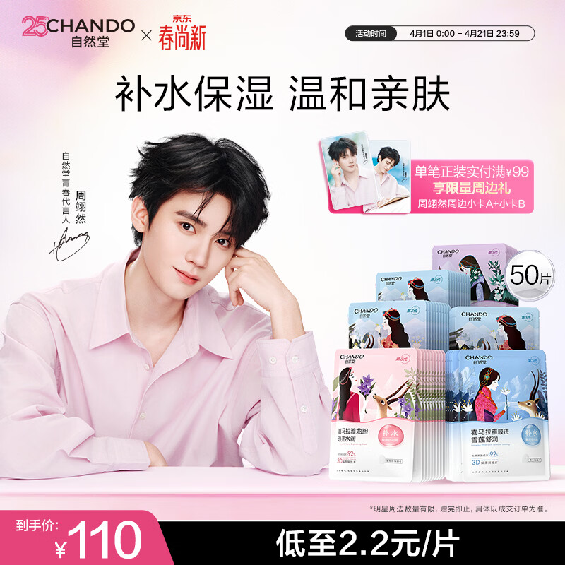 自然堂【周翊然同款】喜马拉雅植物补水面膜50片套装补水保湿敏肌护肤品
