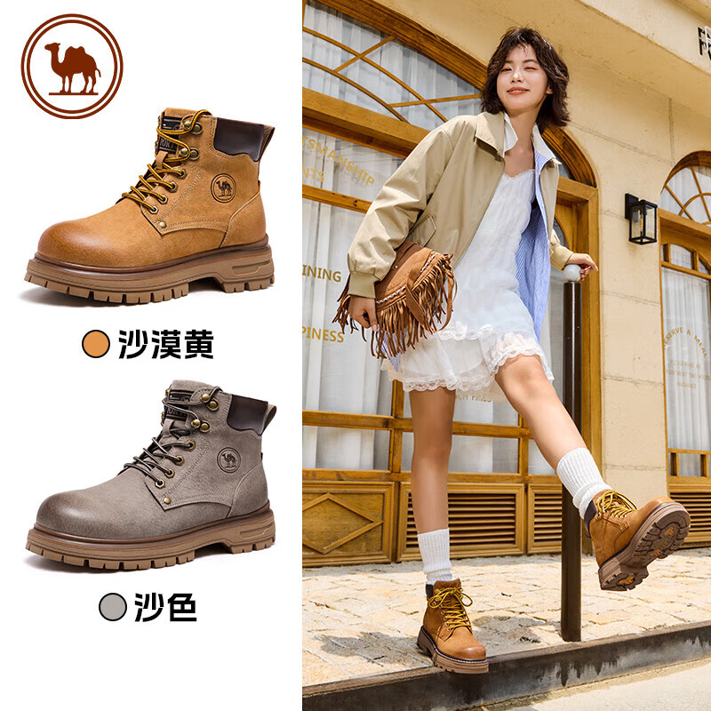 骆驼经典登山户外大黄靴女马丁靴户外工装鞋 P25W379009 沙漠黄 38