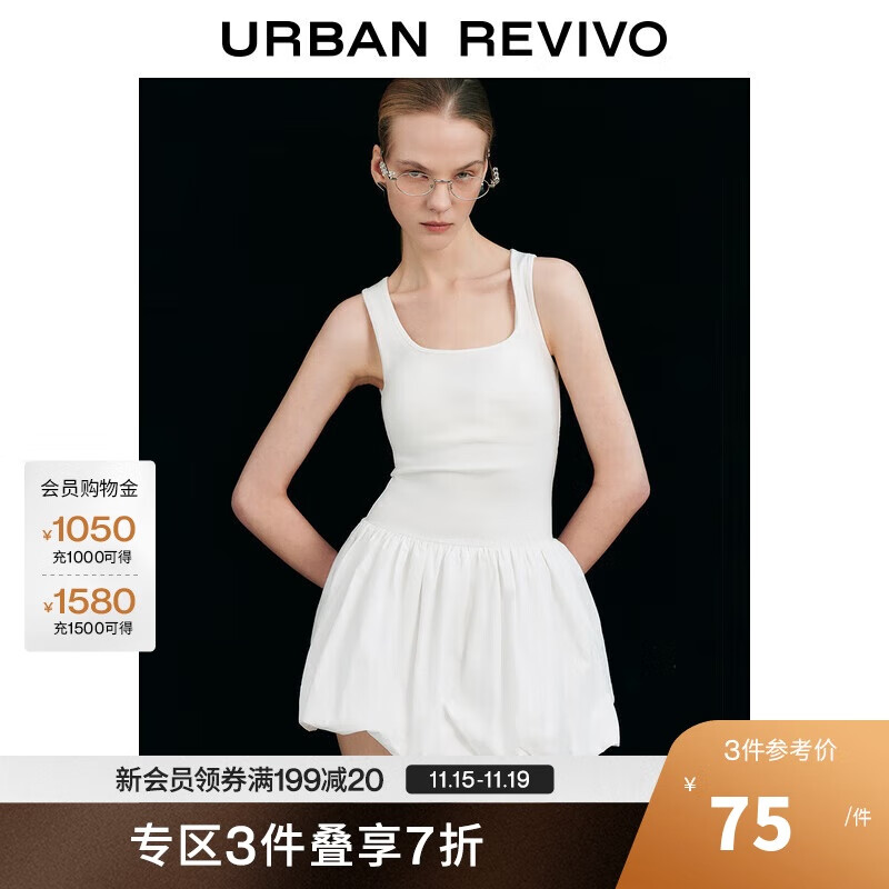 UR2025春季新款女装时尚设计感拼接修身U型领连衣裙UYY750032