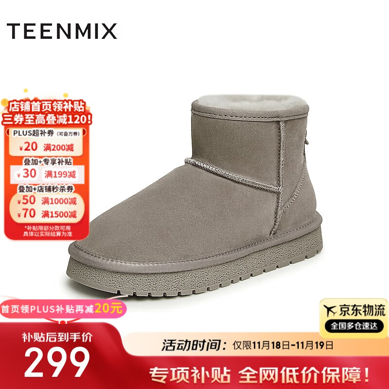 天美意雪地靴商场同款舒适懒人毛毛鞋厚底短靴百搭保暖女靴