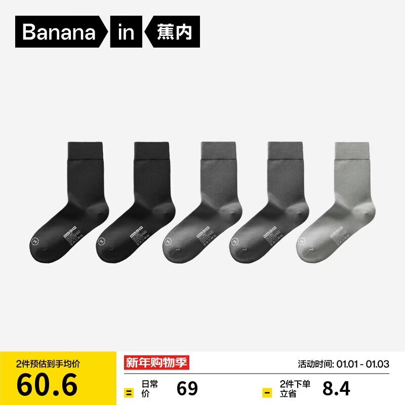 蕉内银皮301S袜子男士新疆精梳棉10A抗菌防臭商务休闲透气秋冬中筒5双