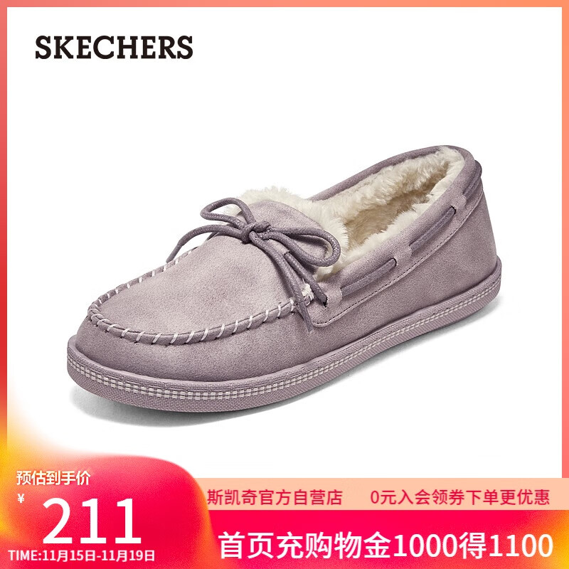 斯凯奇(Skechers)女鞋秋冬加绒保暖单鞋轻便舒适休闲鞋乐福鞋一脚蹬167687