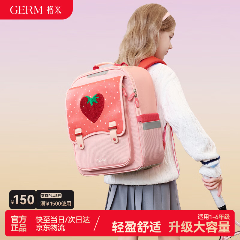 GERM儿童书包小学生轻盈减压一到六年级女孩大容量书包 草莓派对