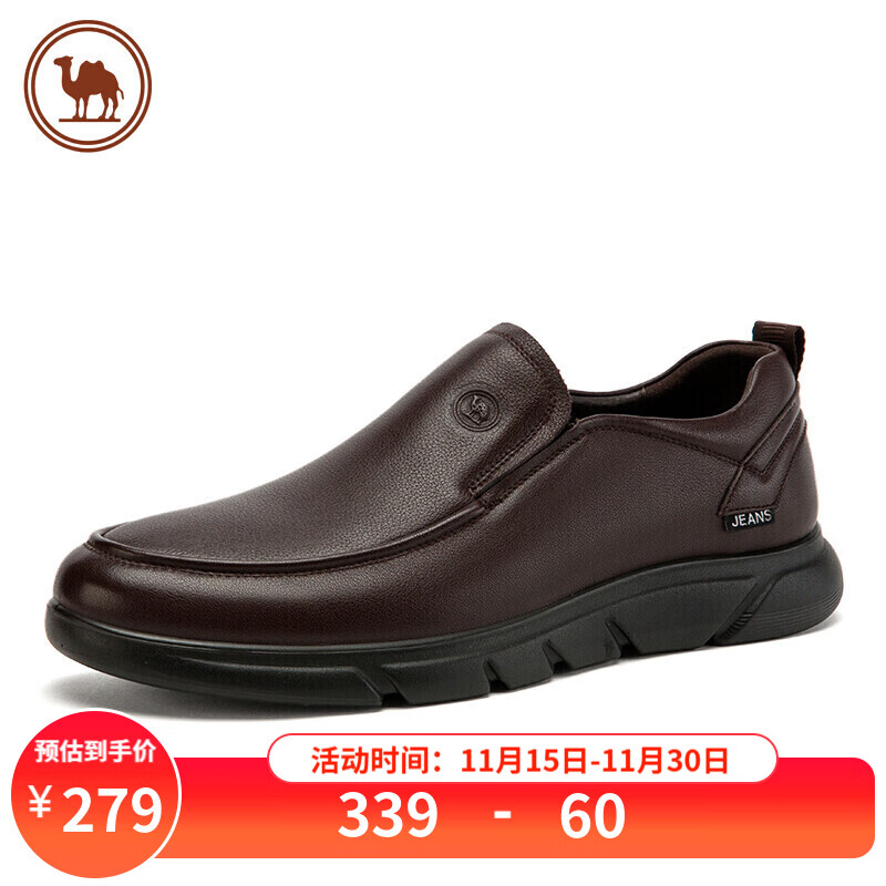 骆驼皮鞋男士商务休闲鞋软底软皮爸爸懒人鞋子W932263660棕色40