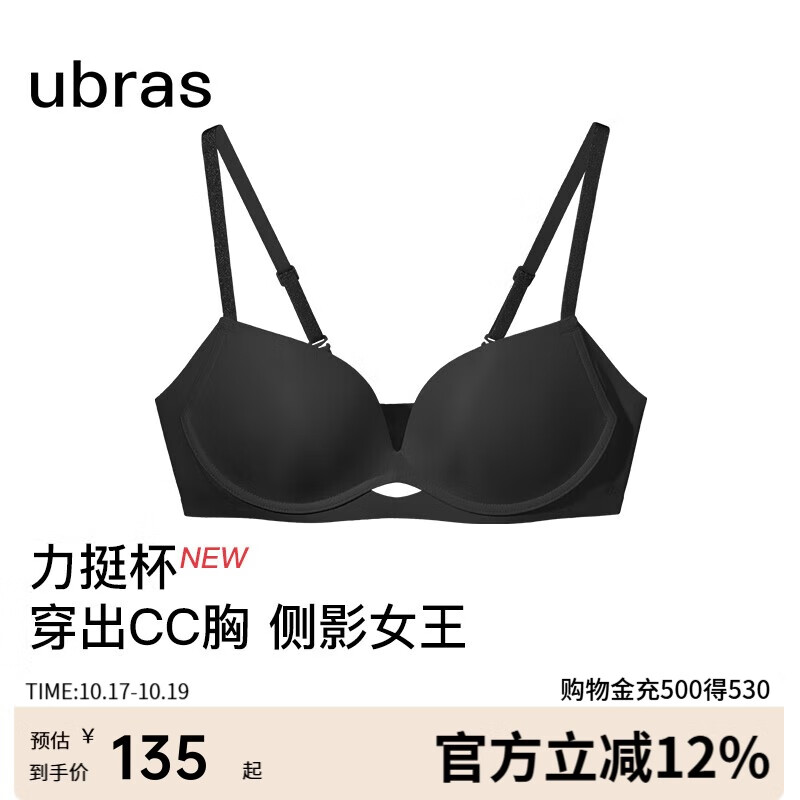 ubras虞书欣同款新力挺杯收副乳小胸聚拢显大无痕文胸罩女黑百搭L