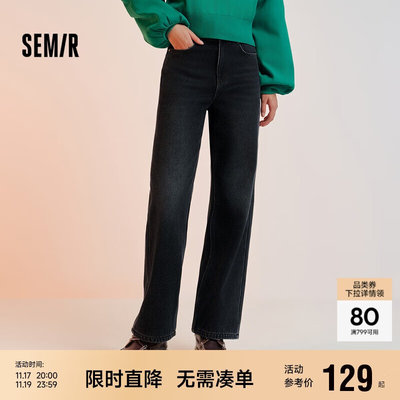 森马(Semir)森柔|牛仔裤女冬加绒宽松长裤简约ins潮百搭阔腿裤103724124005A