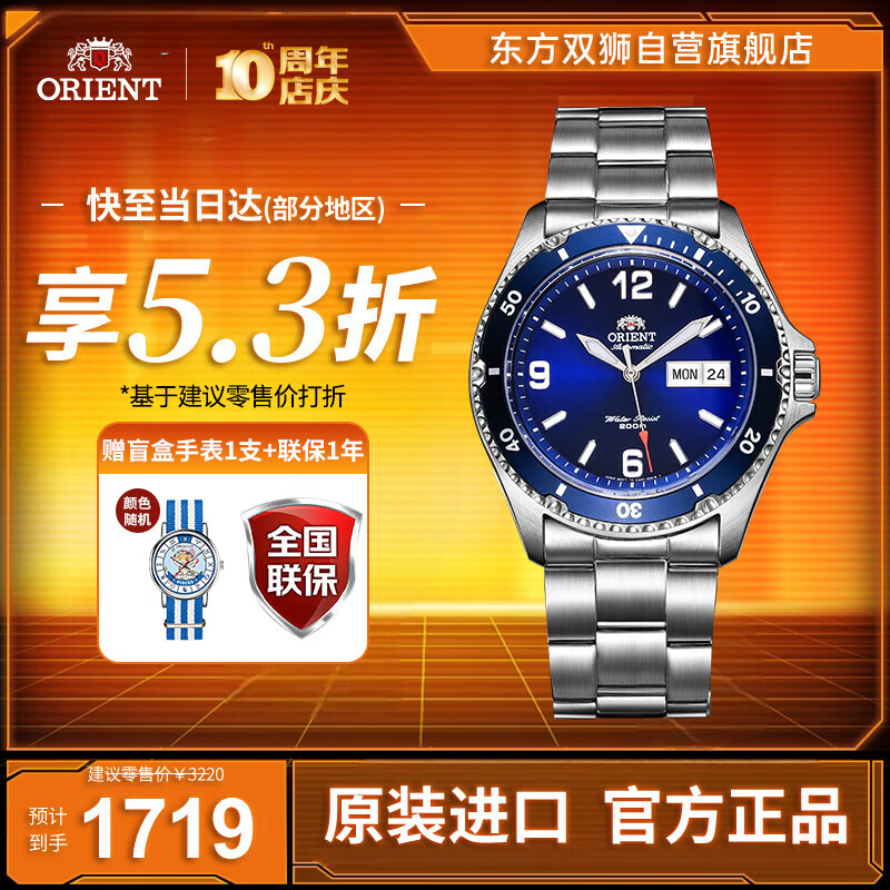 ORIENT东方双狮手表男原装进口机械表日本200米防水潜水表生日礼物男2D9