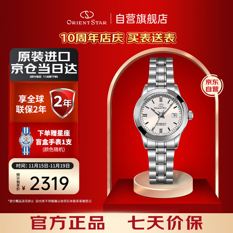 东方双狮手表女日本机械表进口东方星100米防水生日礼物送女友WZ0391
