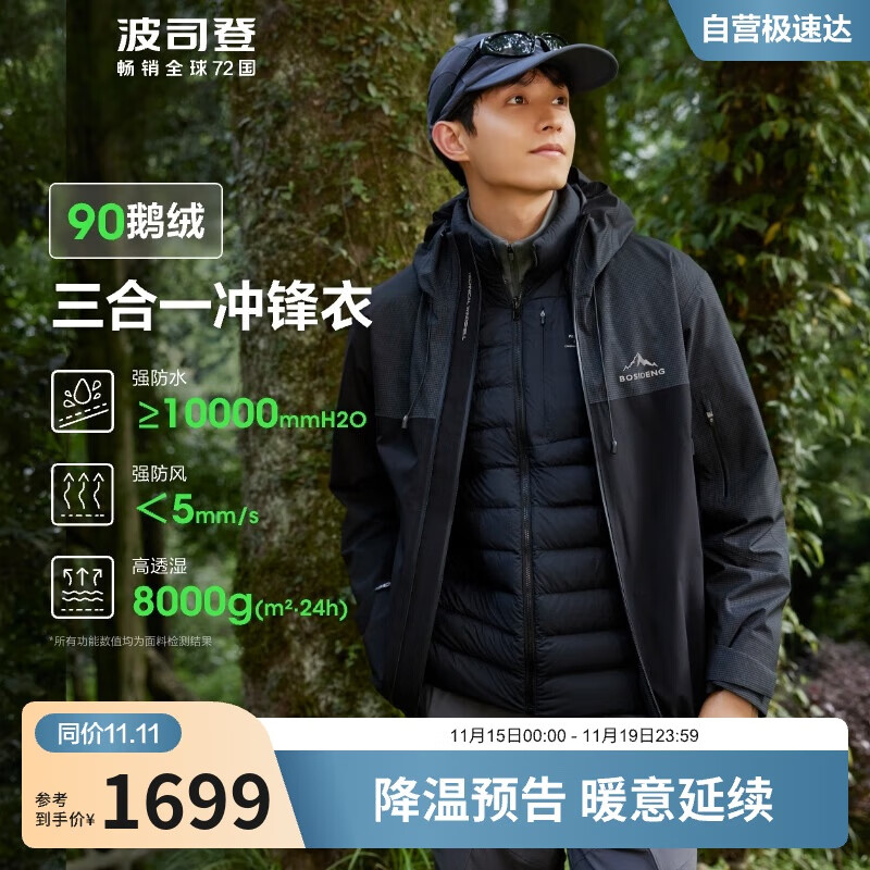 波司登秋冬冲锋衣羽绒服男女情侣同款鹅绒三合一防风防水露营外套