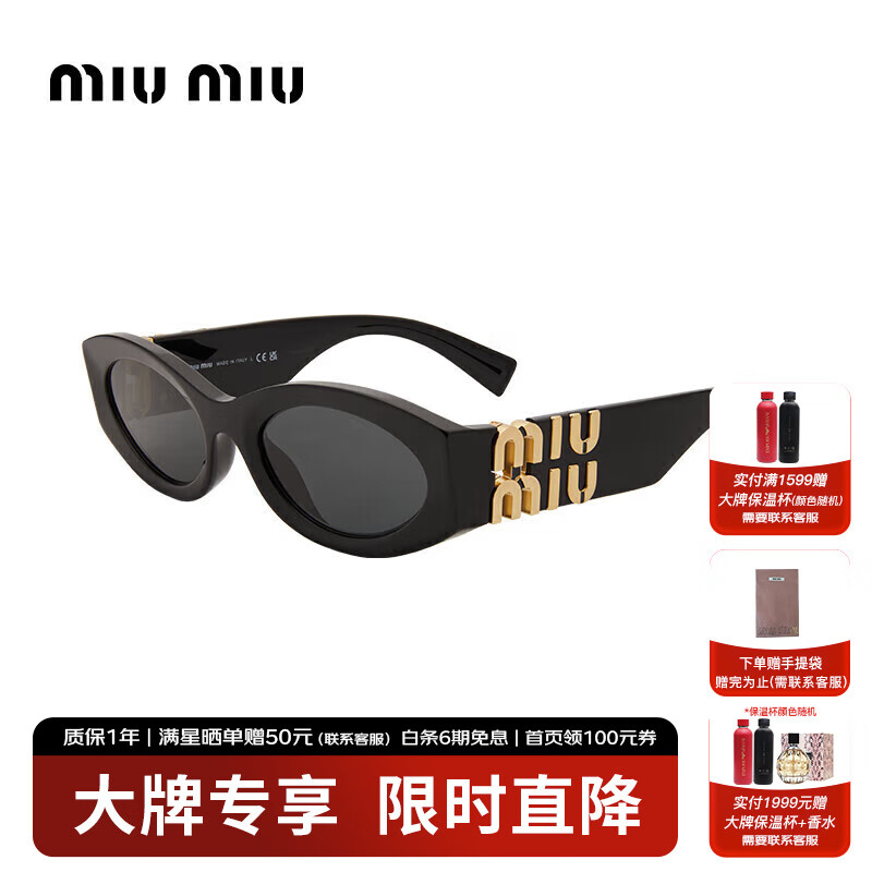 缪缪(MiuMiu)太阳镜防晒墨镜男女款明星同款时尚窄边高级感全框11WS 1AB5S0 54