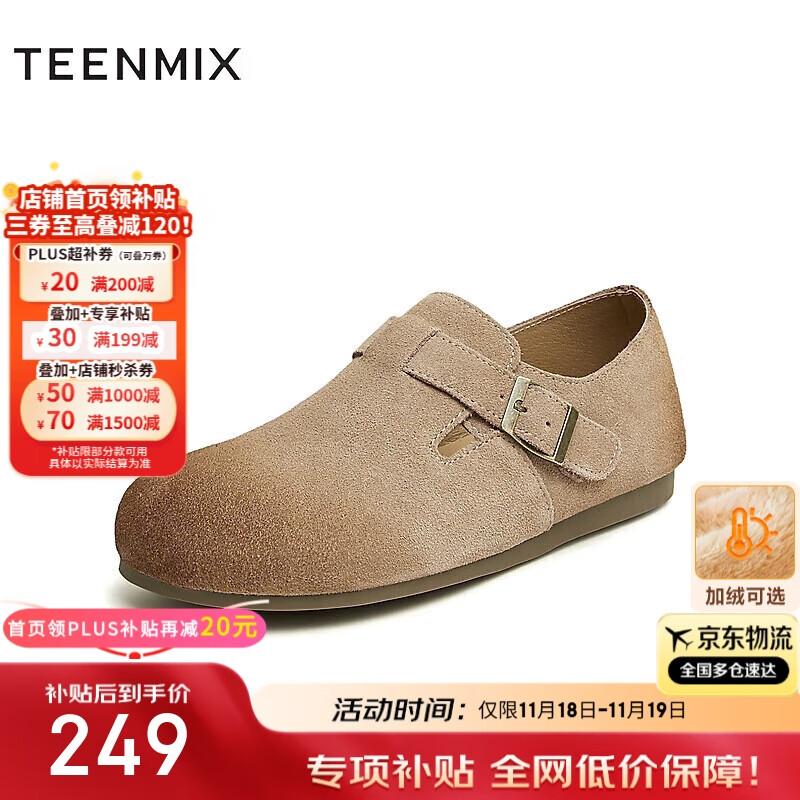 天美意女勃肯鞋加绒女休闲鞋潮流百搭时尚女鞋