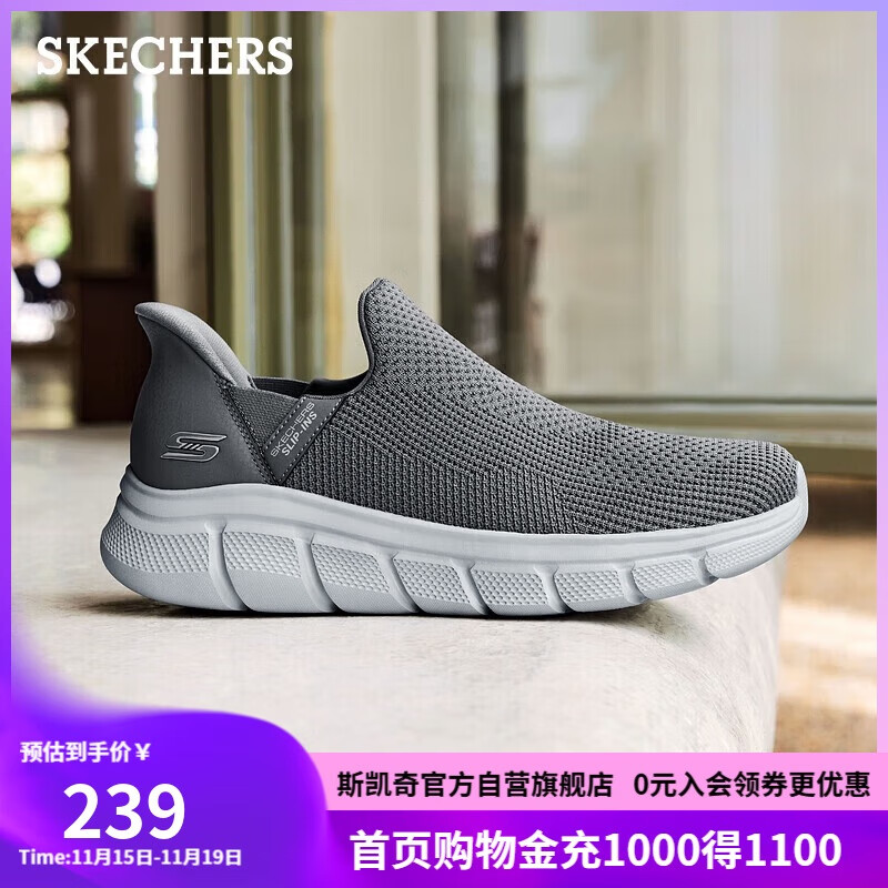 斯凯奇(SKECHERS)闪穿鞋男鞋秋季休闲健步鞋一脚蹬运动鞋百搭软底布鞋118306