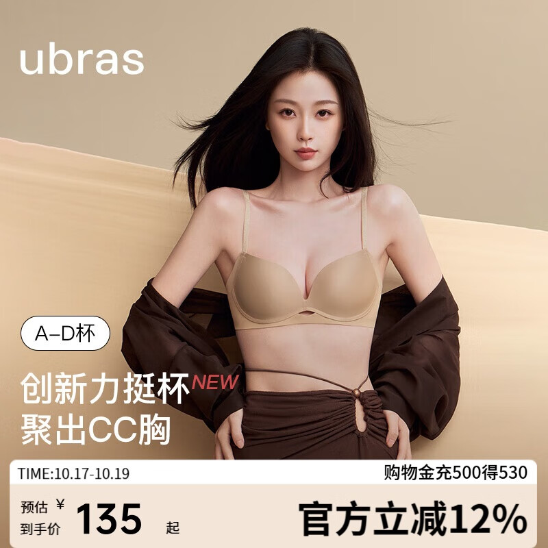 ubras新品力挺杯粉底液收副乳小胸聚拢显大无痕文胸罩女隐形肤百搭M+