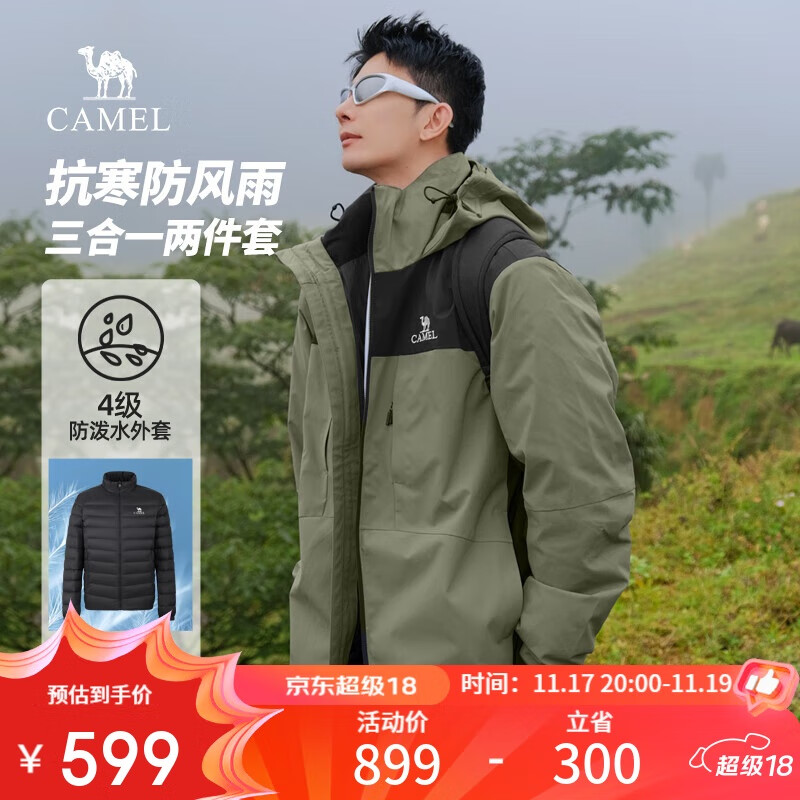 骆驼(CAMEL)三合一抗寒羽绒服男士轻薄白鸭绒户外加厚外套秋冬款M33CF00095