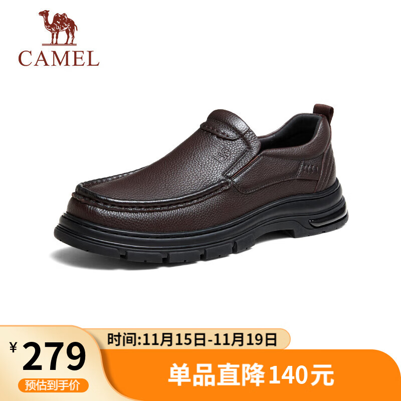 骆驼(CAMEL)牛皮舒适上班休闲爸爸经典商务皮鞋男士 G14A211653 棕色 40