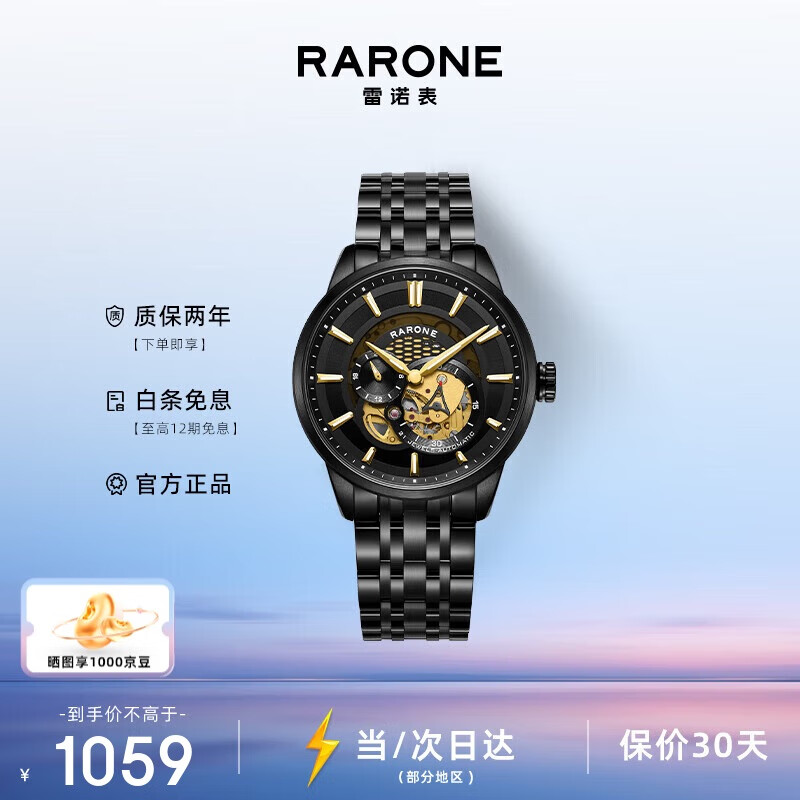 雷诺(RARONE)星际系列潮流镂空全自动男士机械表钢带腕表礼物
