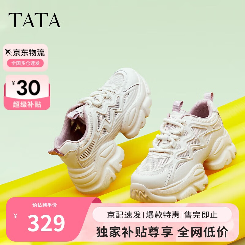 他她春秋厚底透气老爹鞋女鞋网面增高运动鞋新款WOG16BM4白/灰紫 37