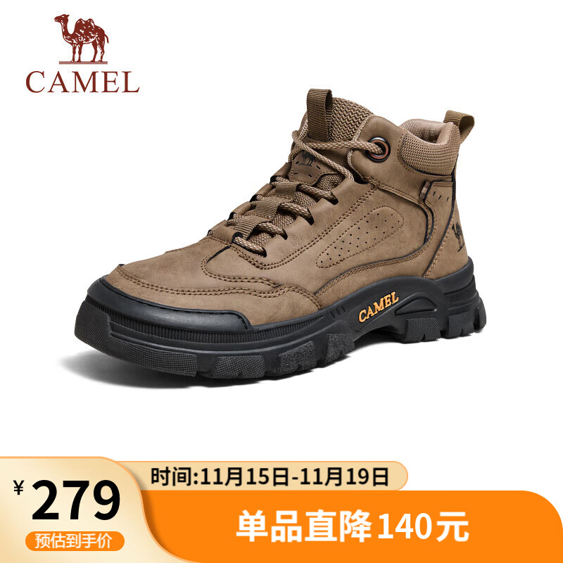 骆驼(CAMEL)工装马丁靴城市户外中帮登山厚底徒步鞋 G14W342614 卡其 42