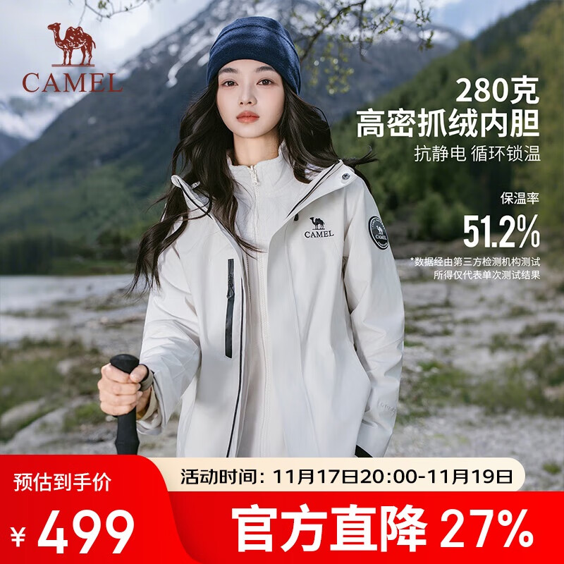 骆驼[迪丽热巴同款]冲锋衣女三合一户外暴雨级防水防风外套登山服男