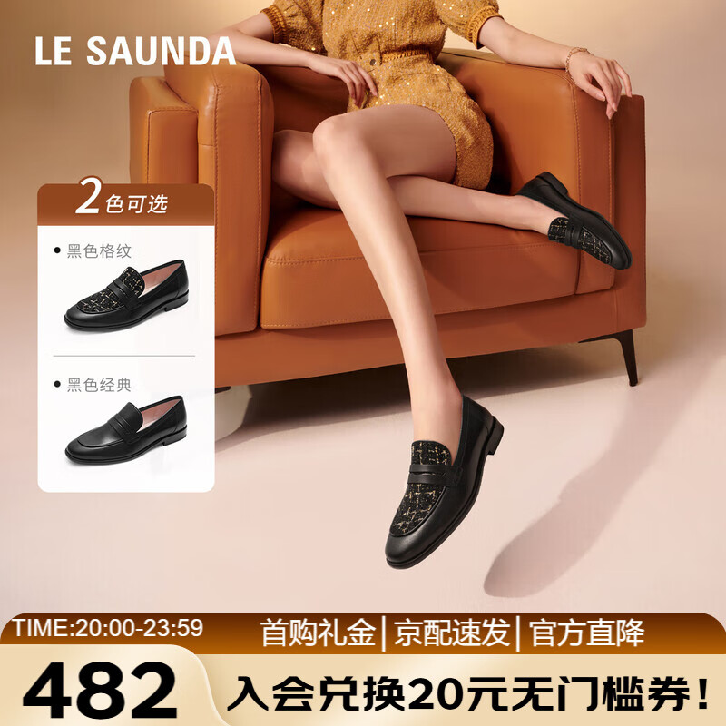 莱尔斯丹莱福家族2025新款复古小香风一脚蹬乐福女单鞋19002 黑色BKL 37