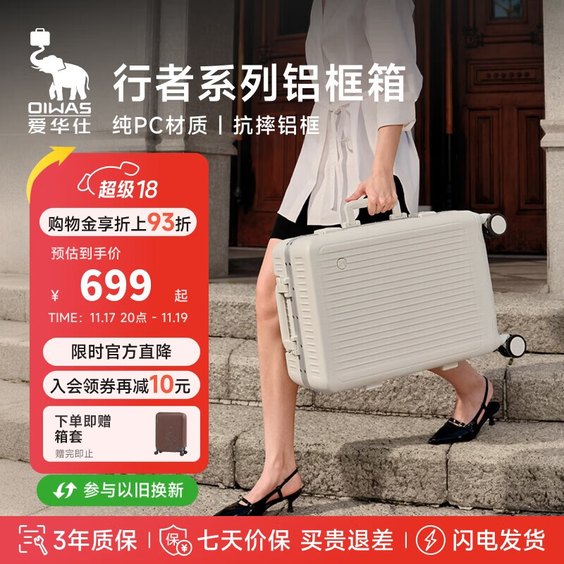 爱华仕行者系列行李箱24英寸铝框拉杆箱旅行箱男商务密码箱6672象牙白