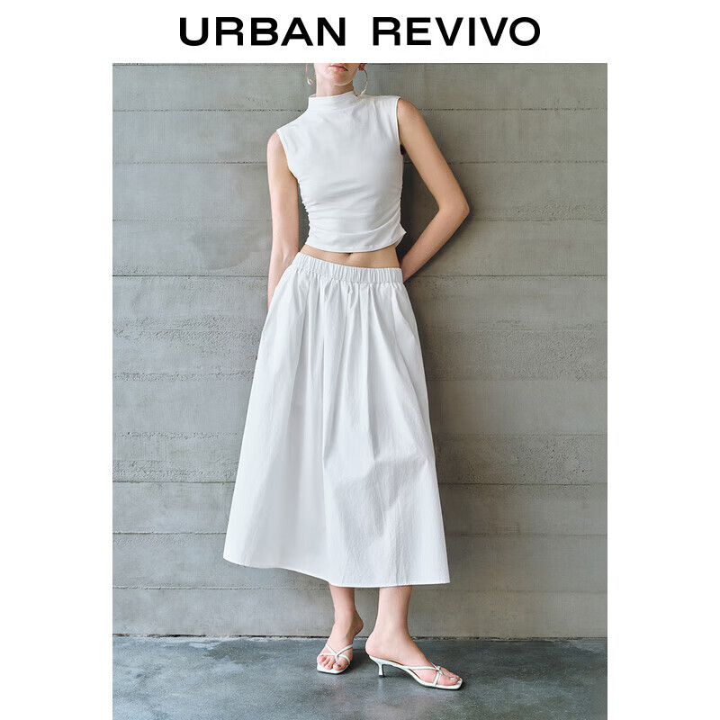 UR2025春季新款女装休闲简约松紧腰超宽松半裙UWM550011