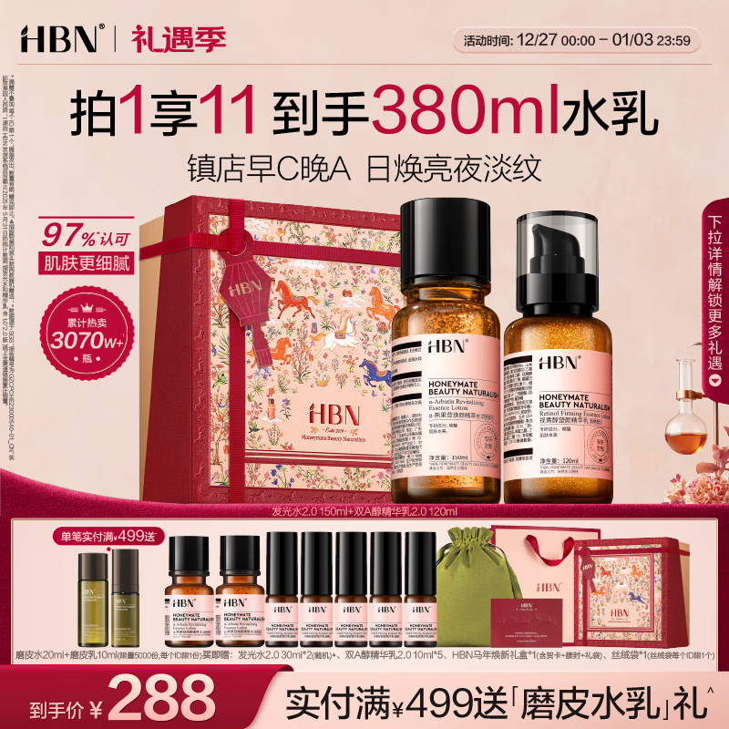 HBN 水乳套装视黄醇A醇早C晚A发光水补水提亮保湿圣诞礼物送女友