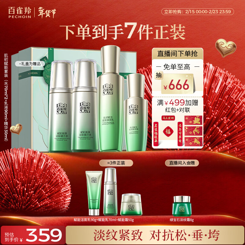 百雀羚(PECHOIN)护肤套装肌初4件套水水乳精华抗皱紧致品质国货新年情人节礼物
