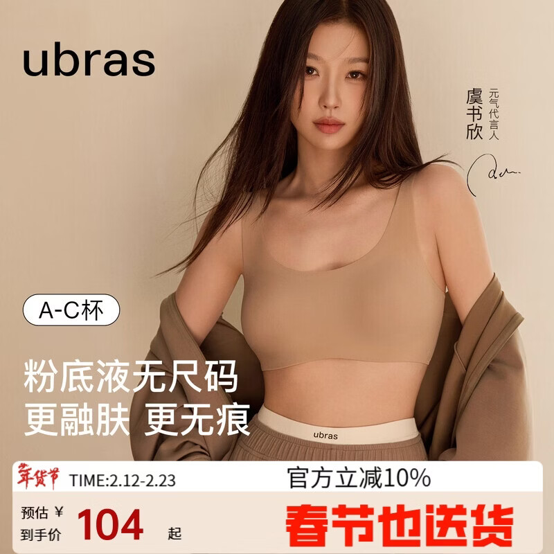 ubras虞书欣同款无尺码内衣女无痕隐形3A抗菌无钢圈文胸罩隐形肤常规版