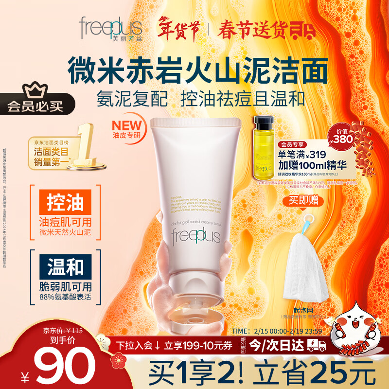 芙丽芳丝(Freeplus)洗面奶男女士氨基酸洁面乳控油祛痘去黑头80g