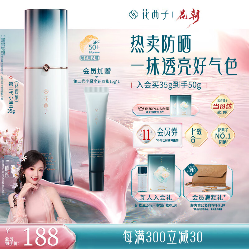 花西子【爆款防晒】防晒2代小黛伞35g花西紫防晒霜颜隔离遮瑕七效亮肤