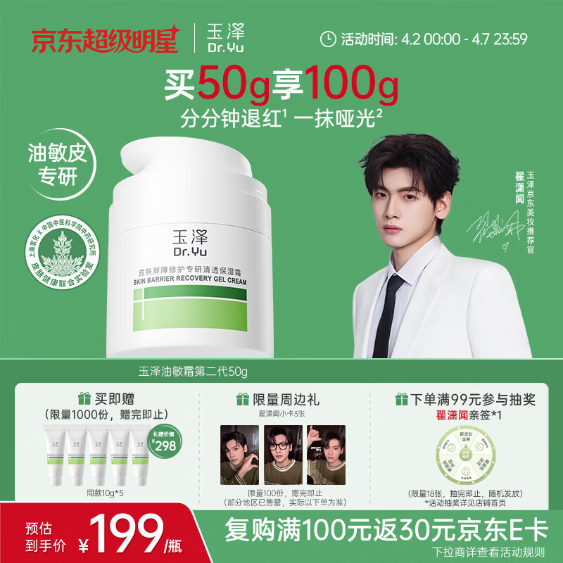 玉泽(Dr.Yu)皮肤屏障修护专研清透保湿霜50g 油敏肌舒缓控油面霜