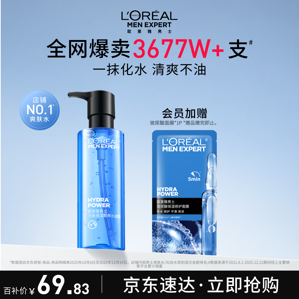 欧莱雅男士专用水能保湿水凝露120ml补水须后水护肤品爽肤水礼物男生