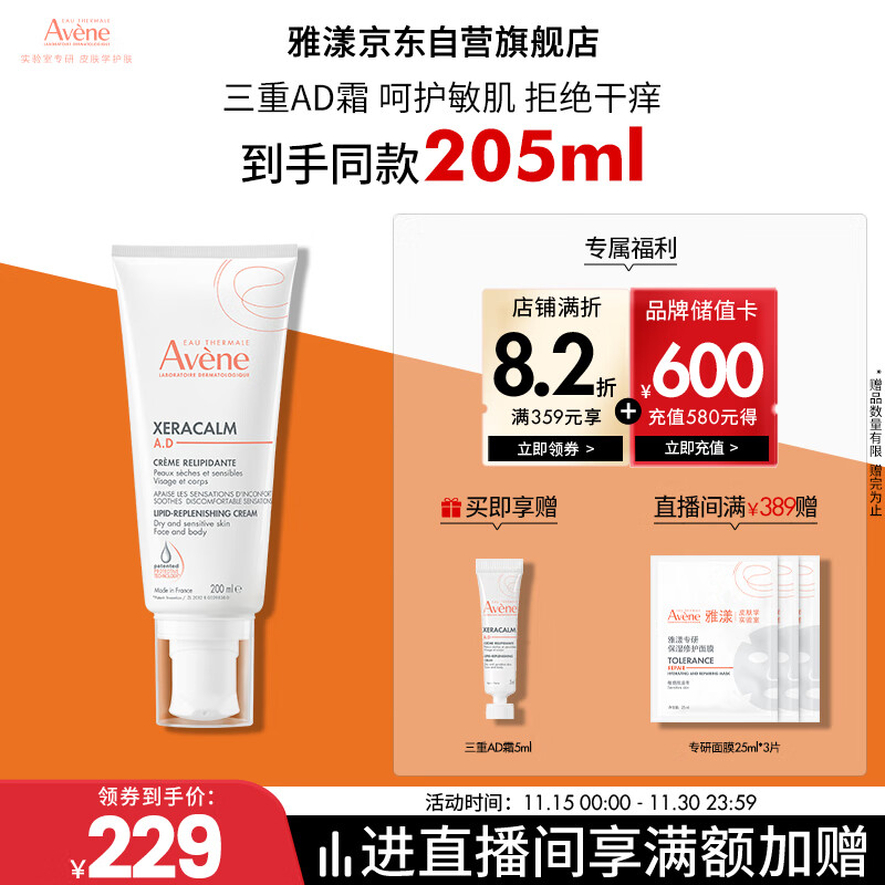 雅漾(Avene)三重专研舒缓霜200ml AD霜保湿滋润干痒舒缓敏肌身体乳润肤乳