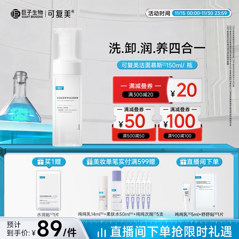 可复美氨基酸藻萃净润洁面慕斯150ml/瓶/盒 轻柔净肤 沁润