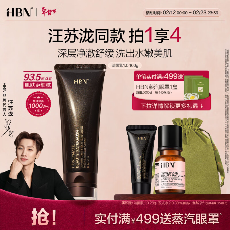 HBN 洗面奶氨基酸洁面敏感肌温和补水护肤品礼物情人节礼物送女友