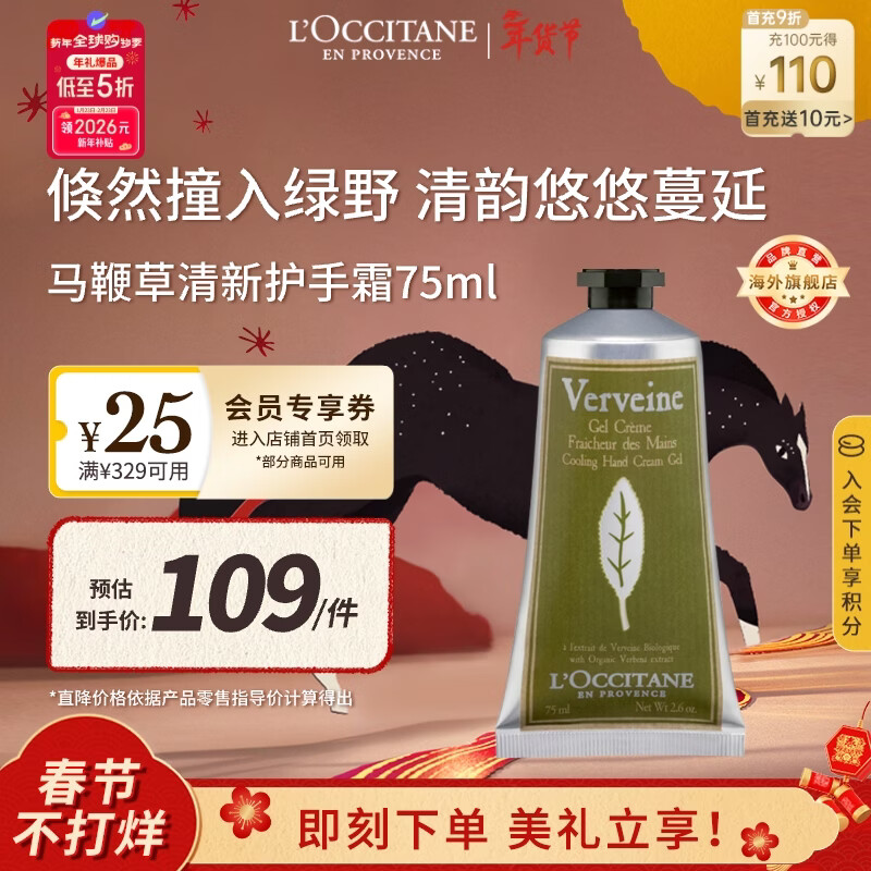 欧舒丹清新马鞭草护手霜75ml清新草本香氛保湿滋润法国新年礼物年货节